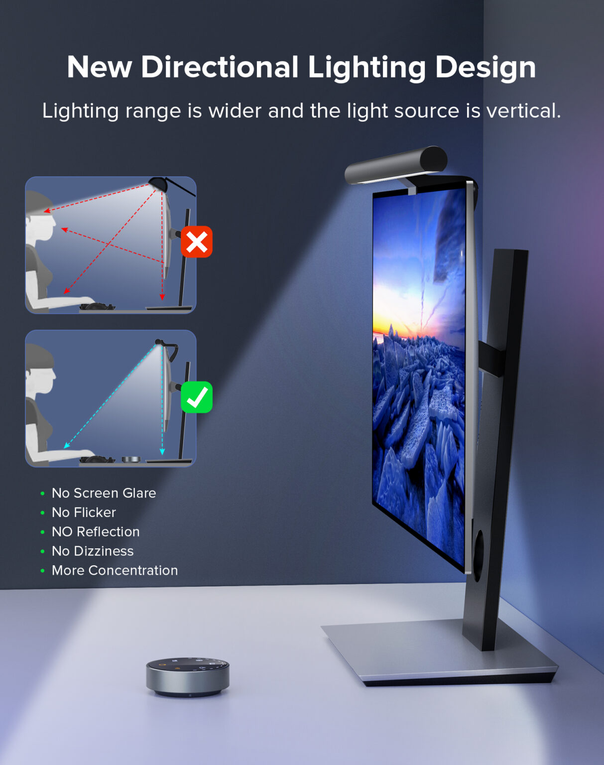 - Đèn treo màn hình bảo vệ mắt Choetech E1129có tác dụng chiếu sáng phạm vi hẹp gồm màn hình và bàn làm việc mang đến không gian làm việc thoải mái cho người sử dụng đồng thời không ảnh hưởng đến mọi người xung quanh. Bên cạnh đó, đèn được thiết kế phù hợp cho cả màn hình phẳng và cong, dễ dàng lắp đặt bằng giá đỡ từ tính và đế xoay 25°