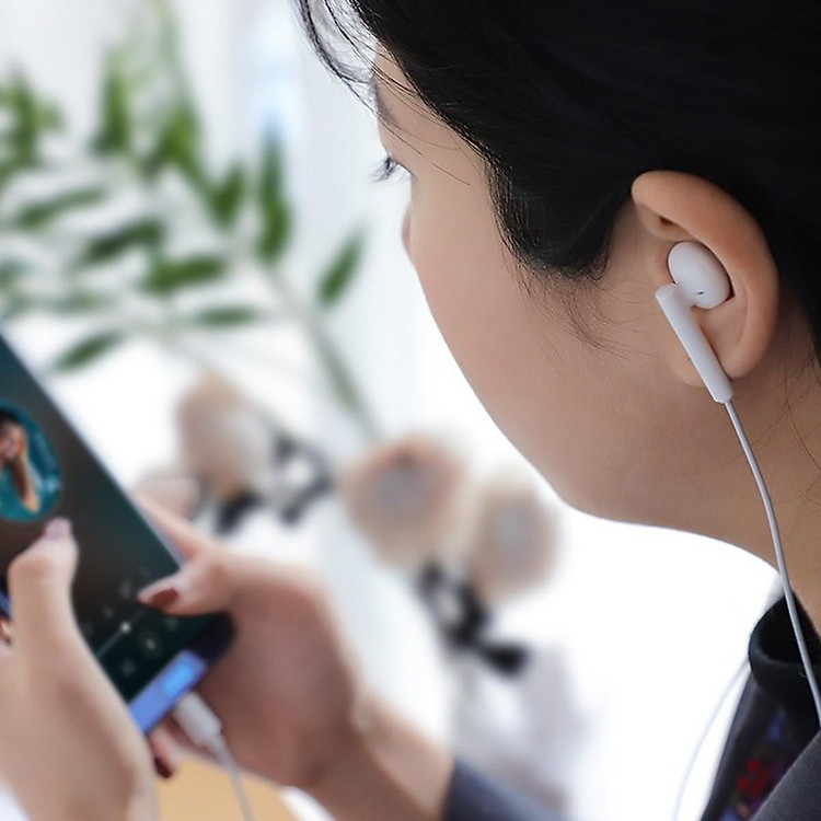 Chiếc tai nghe tích hợp microphone, nút điều khiển bài hát Play/Pause và nhận cuộc gọi: